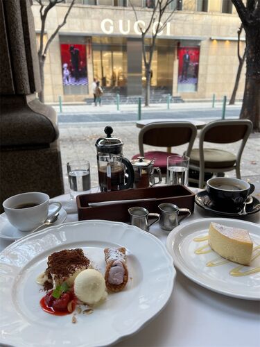 ciao,bello tomoです 久しぶりに、カフェラ 大丸神戸店で夫婦2人でカフェした話 今回は神戸大丸のカフェラさんでカフェ☕️を する目的でやってきました。 私達が座った場所はリニューアルされたGUCCIが見える優雅な席で、後ろには暖かい暖炉があって ⛄️冬の寒…
